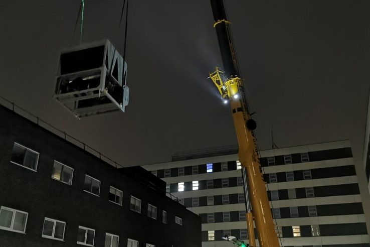Another successful crane lift where a new Daikin R32 water chiller was lifted into position on the hospital roof early…